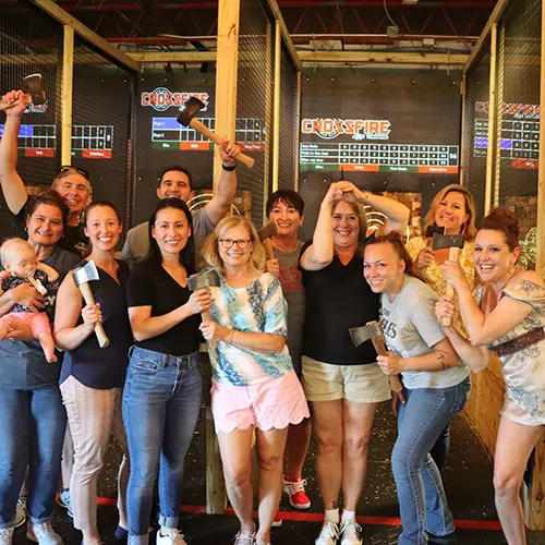 No skills required. Our coaches get you throwing safely in minutes, the rest is just laughs and bullseyes.